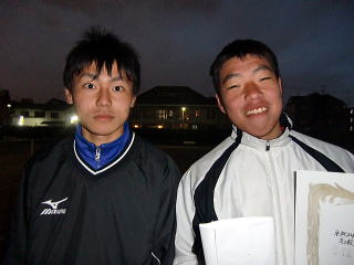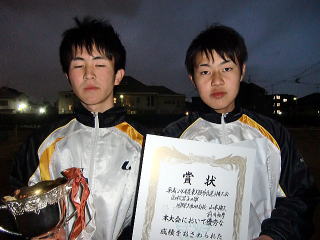 男子 優勝 山本・前川ペア(大和田国際) 女子 優勝 折小野・佐々木(汎愛)
