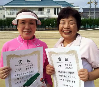 一般女子 優勝 須山・松川ペア(右) 左は遠来賞の長友さん、ペアの川瀬さん 壮年女子 優勝 長谷・野アペア 準優勝 廣瀬・仲川 三位 上山・金子ペア 三位 北口・久保田ペア