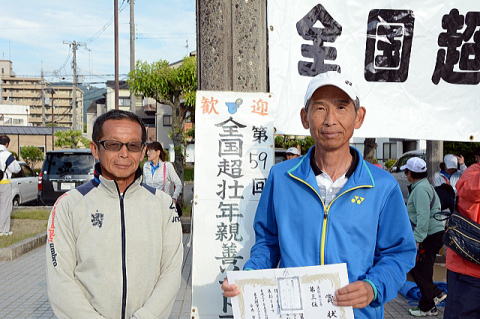 三位 前田・関ペア(天長クラブ) 三位 菊地・宮田ペア(七曲クラブ・下関市OB会)