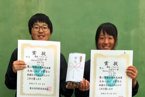 高校男子準優勝 津村・木村(長尾高校) 高校女子準優勝 三輪・谷裏(樟蔭高校)