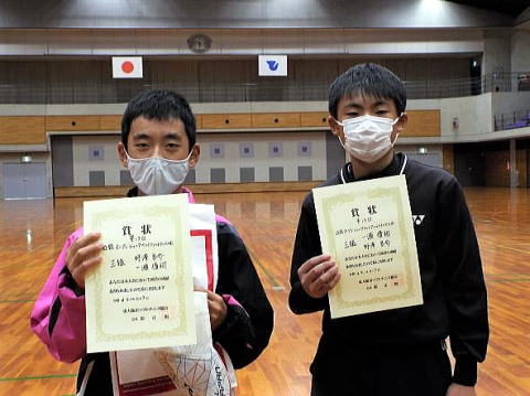 男子 3位 今井・柏原優ペア(藤井寺JSTC) 女子 3位 松本・山田ペア(河南JTC)