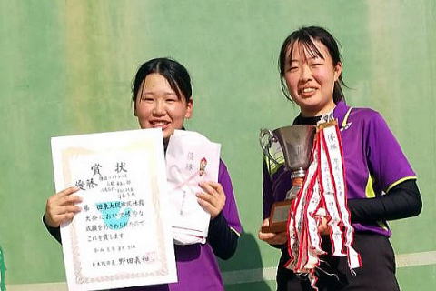 男子優勝 牧野・荒井ペア(近大附属高校) 女子優勝 瀬戸・齋藤ペア(樟蔭高校)