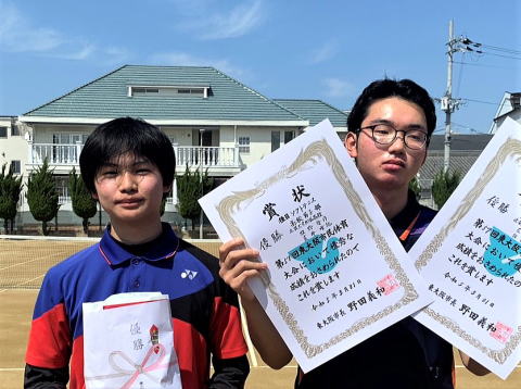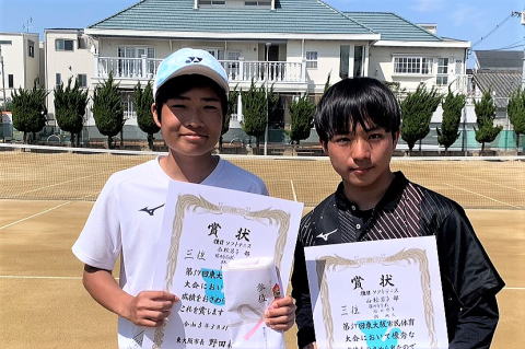男子3位 松岡・鬼塚ペア(近大附属高校) 女子3位 小野・太田ペア(四條畷学園高校)