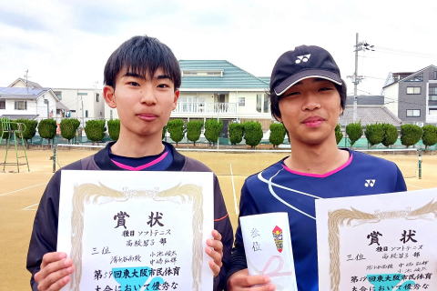 3位 夏目・奥田ペア(樟蔭高校) 男子 4位 沖山・林ペア(近大附属高校)