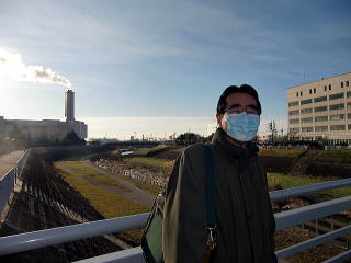 摂津・安威川の堤防からみた水平線状の雲(と有馬氏) 上手く写ってなくてすみません