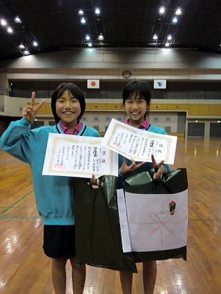女子 3位 清水・山田ペア(藤井寺・河南) 女子 3位 久木・大野ペア(河南)